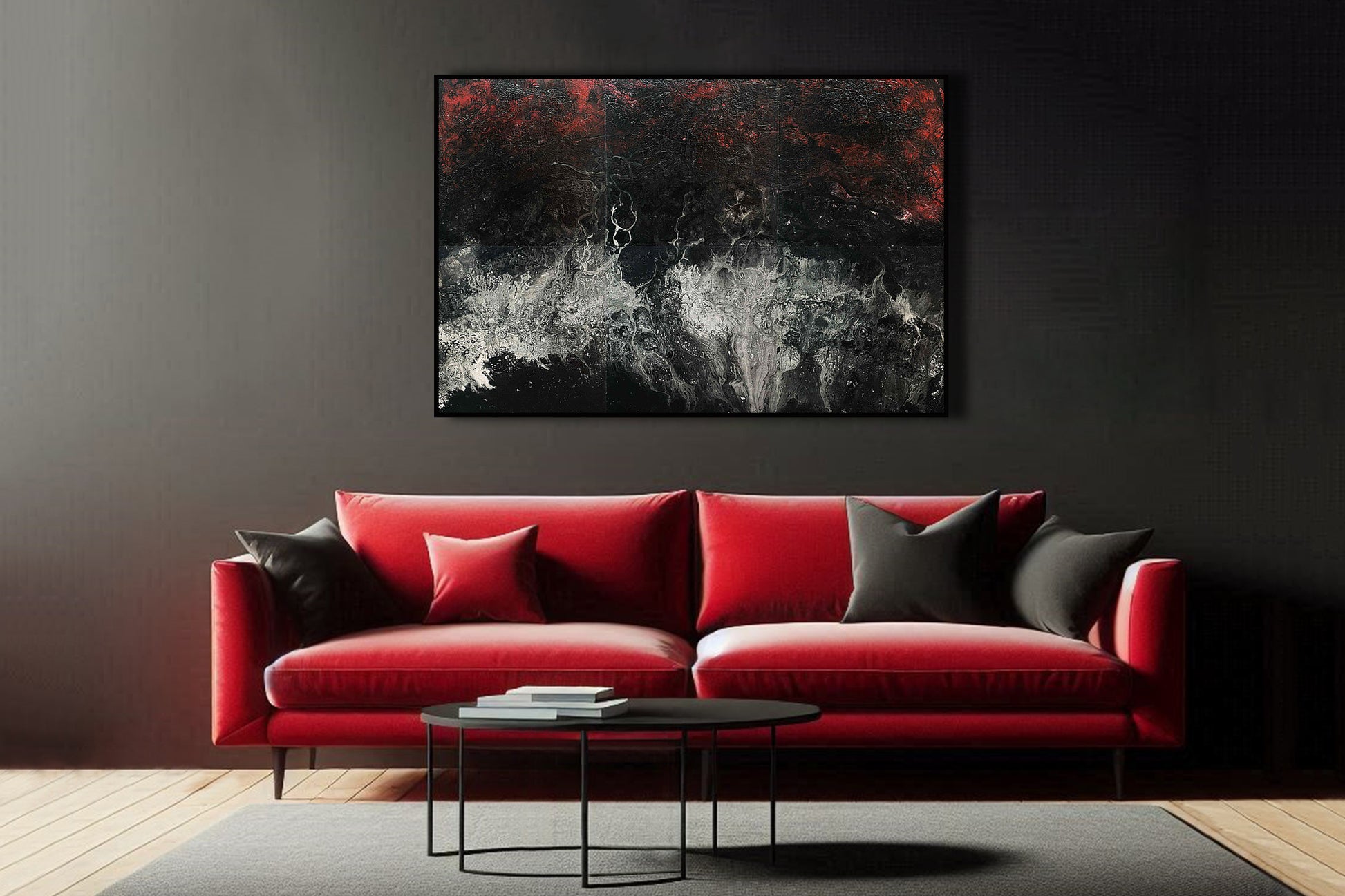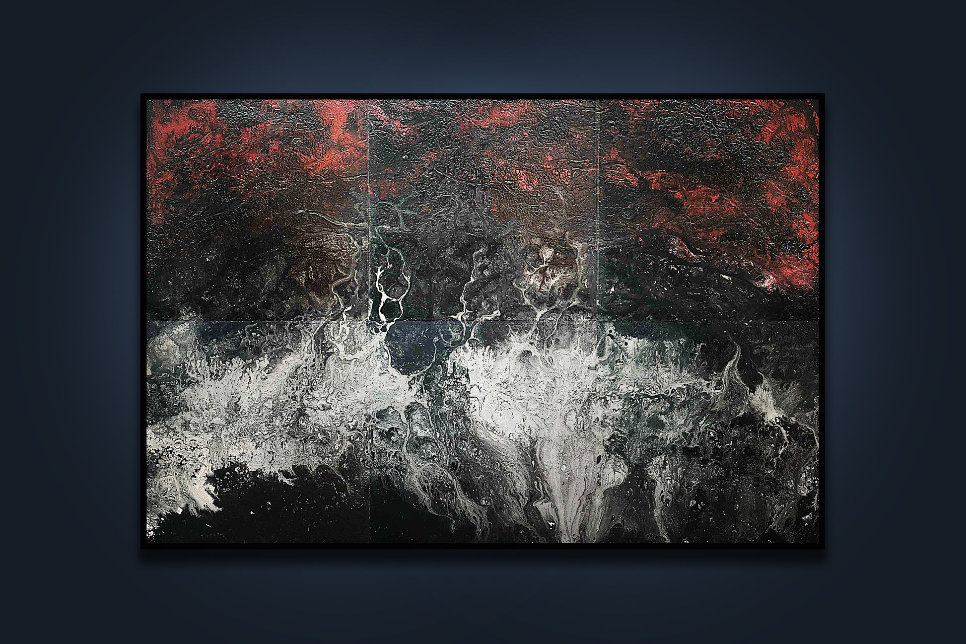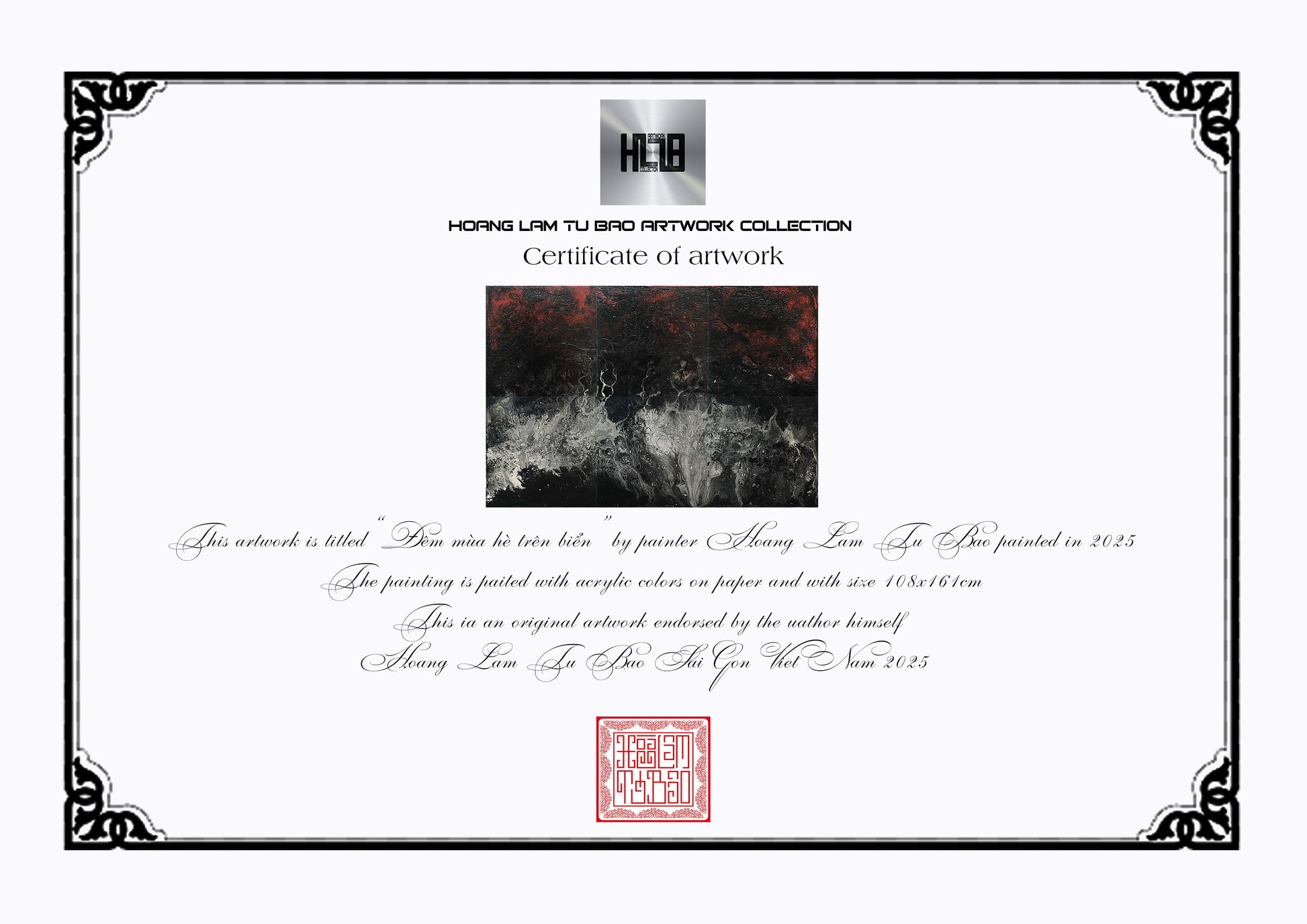Trên bãi biển đêm hè trải dài như một bức tranh chậm rãi chuyển sắc, không gian như lắng lại dưới tấm màn trời thăm thẳm điểm xuyết muôn vì sao lấp lánh. Gió biển thổi nhè nhẹ, mơn man trên thịt da như lời ru êm dịu của đại dương. Sóng vỗ rì rào, từng lớp nối tiếp nhau vỡ òa trên bờ cát ướt, phản chiếu ánh sáng lấp lánh của ánh trăng bàn bạc treo nghiêng phía chân trời, mỗi nhịp vỗ như nét cọ mềm mại miết qua mặt biển sâu thẫm màu lam. Xa xa, đường chân trời mờ ảo như tan vào màn sương đêm, tạo nên khúc nhạc dìu dịu của thiên nhiên đang thở gợi cảm giác vô hạn và yên bình. Không gian ấy như vừa tĩnh lặng, vừa sống động nơi cảm xúc dễ dàng trôi theo nhịp sóng và thời gian dường như chậm lại từng nhịp, như một giấc mơ được vẽ bằng âm thanh, ánh sáng và cảm xúc. Kích thước 107x161cm(54x54x6)